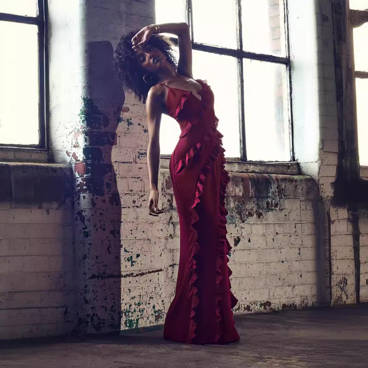 Valencia Women's V-neck Shoulder Strap Side Slit Backless Dress